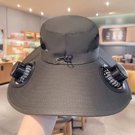 Este sombrero solar con doble ventilador