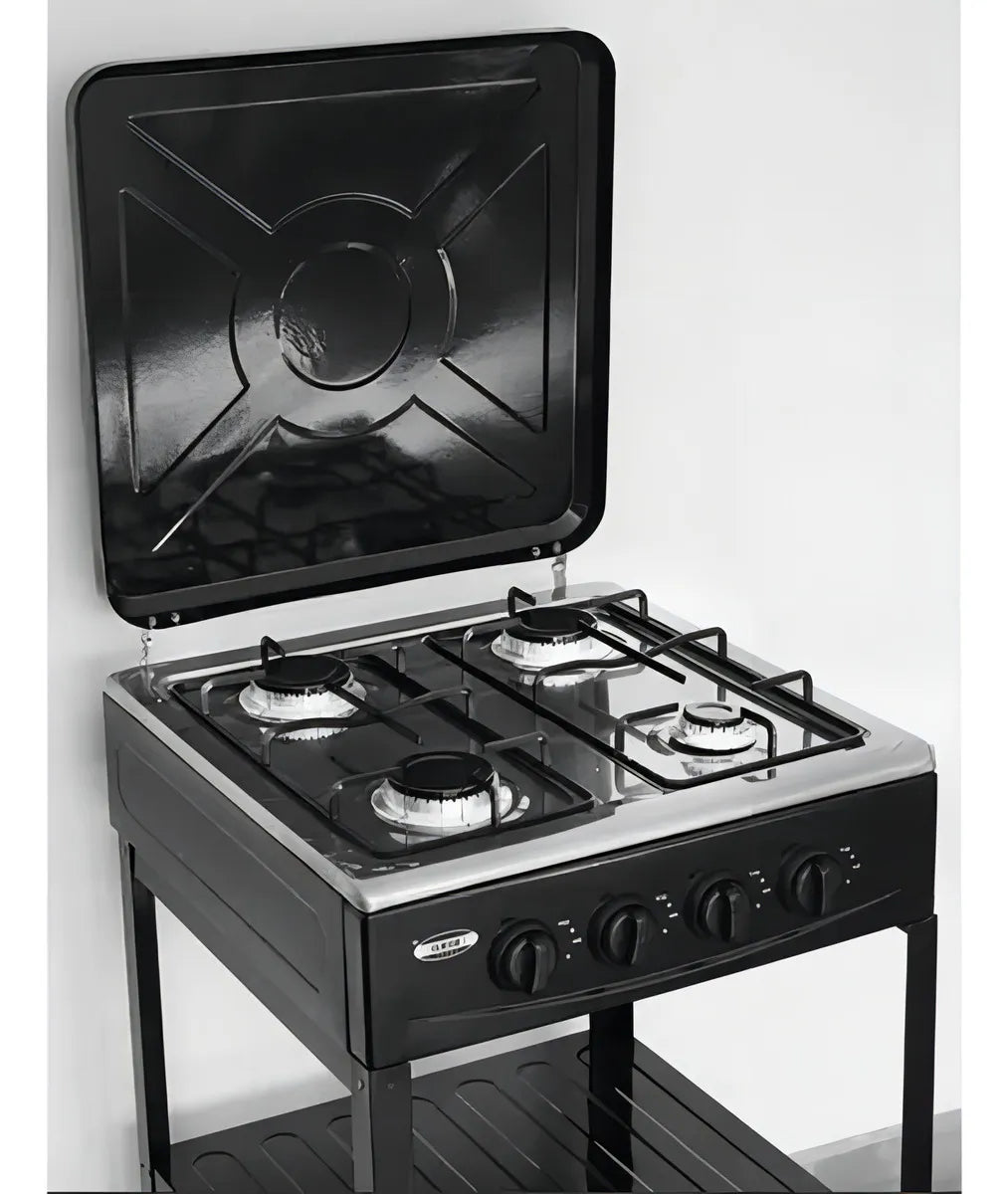 Replace this text with your contentCocina Encimera A Gas 4 Quemadores Con Repisas Color Negro. Este producto cuenta con 4 quemadores a Gas y una Tapa de seguridad. Incluye estantes, los cuales REQUIEREN ARMADO.